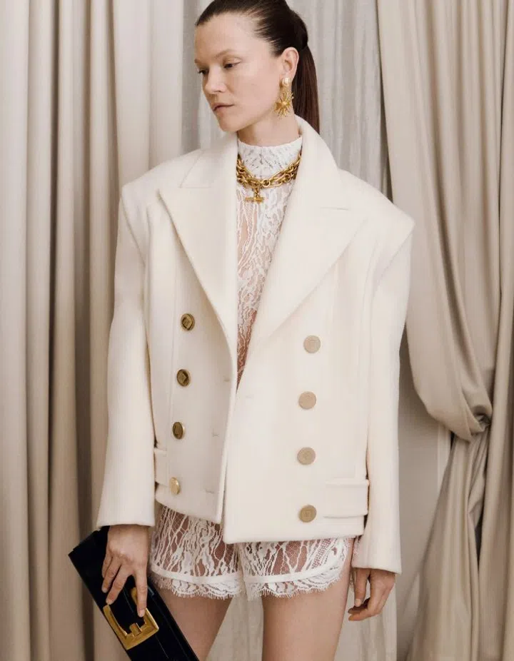 A sheer feminine dress or skirt instantly turns powerfully elegant with a beautifully tailored blazer – strong shoulders and oversized silhouettes preferred.