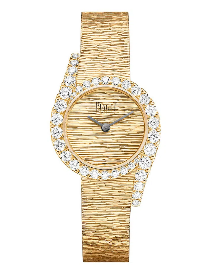 The 1960s and 1970s were considered the golden age for Swiss brand Piaget. It designed watches featuring coloured stone dials and creatively hammered gold bracelets worn by the likes of Jackie O, Elizabeth Taylor and more. This gave rise to the decor palace technique, an engraving method that gives the gold material a rugged texture.