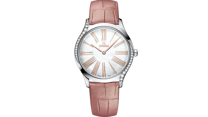 How exactly do we define quiet luxury in watchmaking? It’s all in the details, from the size of the bezel to the font of the numerals, and the way the lugs slant and fit the wrist. The Omega De Ville Tresor ($7,650) has it all in spades. The 39mm timepiece comes in a variety of colours, but if you want to embody stealth wealth, opt for the version featured here. The lacquered white mother-of-pearl dial features oversized Roman numerals, paired with a nondescript beige strap. Lastly, giving you utmost value for your buck are the cascading diamonds on the crown and bezel.