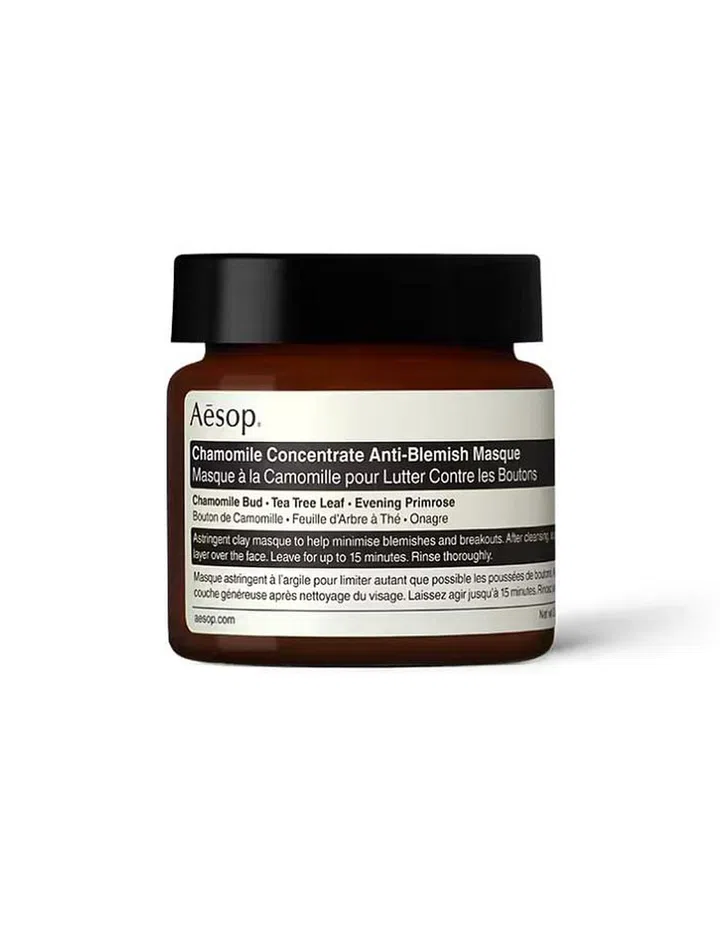 Another stellar Chamomile infused product that does wonders includes the Anti-Blemish Masque from Aesop. Great for calming red, inflamed and angry areas, the masque eradicates blemishes and effortlessly alleviates stressed skin. Other key ingredients in this clay-based mask also include tea-tree leaf and evening primrose, which soothes troubled skin as it encourages wound healing, has antibacterial properties, and promotes enhanced radiancy all the while reducing redness and signs of ageing for a clearer complexion.