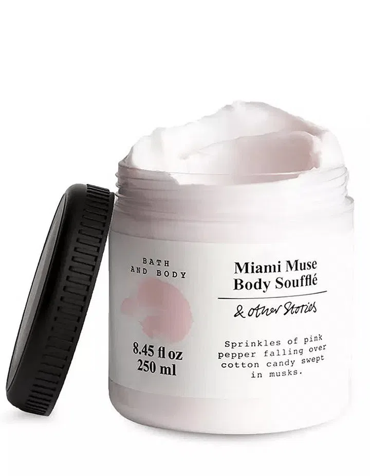 Richly pampering and luscious, this body soufflé keeps your skin soft, supple and delicately scented; with hints of pink pepper that give the cotton candy scent an edge.
