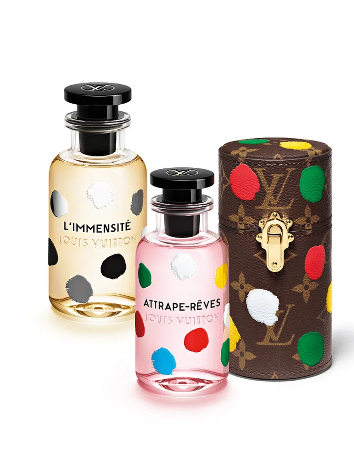 long-standing partnership with the visionary, Louis Vuitton has once again teamed up with Kusama, this time with the artist’s instantly recognisable motifs adorning three of the brand’s signature fragrances – Attrape-Reves, Spell On You and L’Immensite.