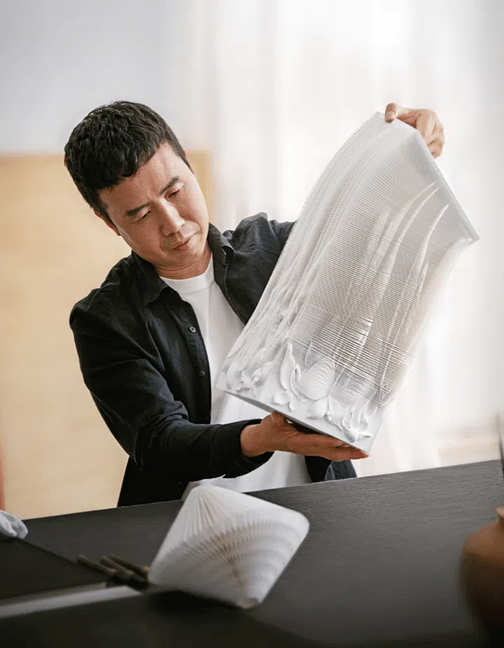Chinese artist Li Hongbo (pictured right) worked with French luxury beauty brand Guerlain to incorporate his intricate paper sculptures in a limited edition version of the brand’s best-selling Orchidee Imperiale Black The Cream.