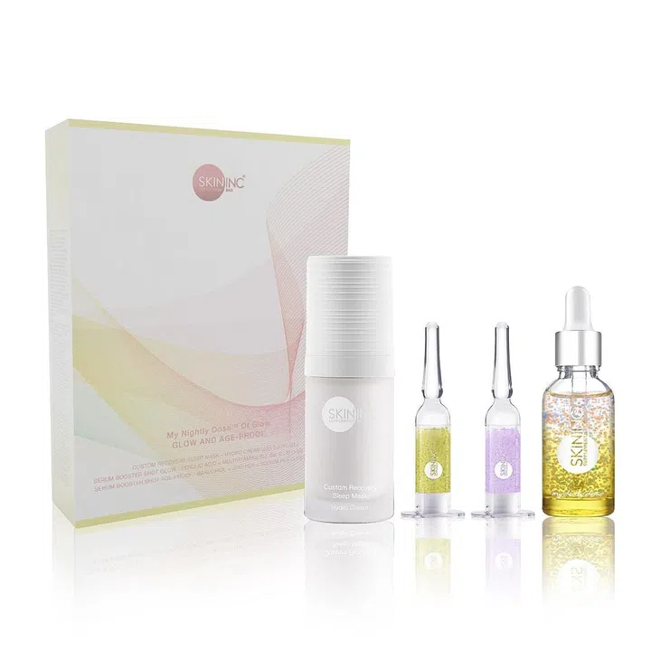 A kit that contains a hydro-cream sleep mask base and two serum boosters – Age-Proof and Glow that work to recharge your skin while you sleep.