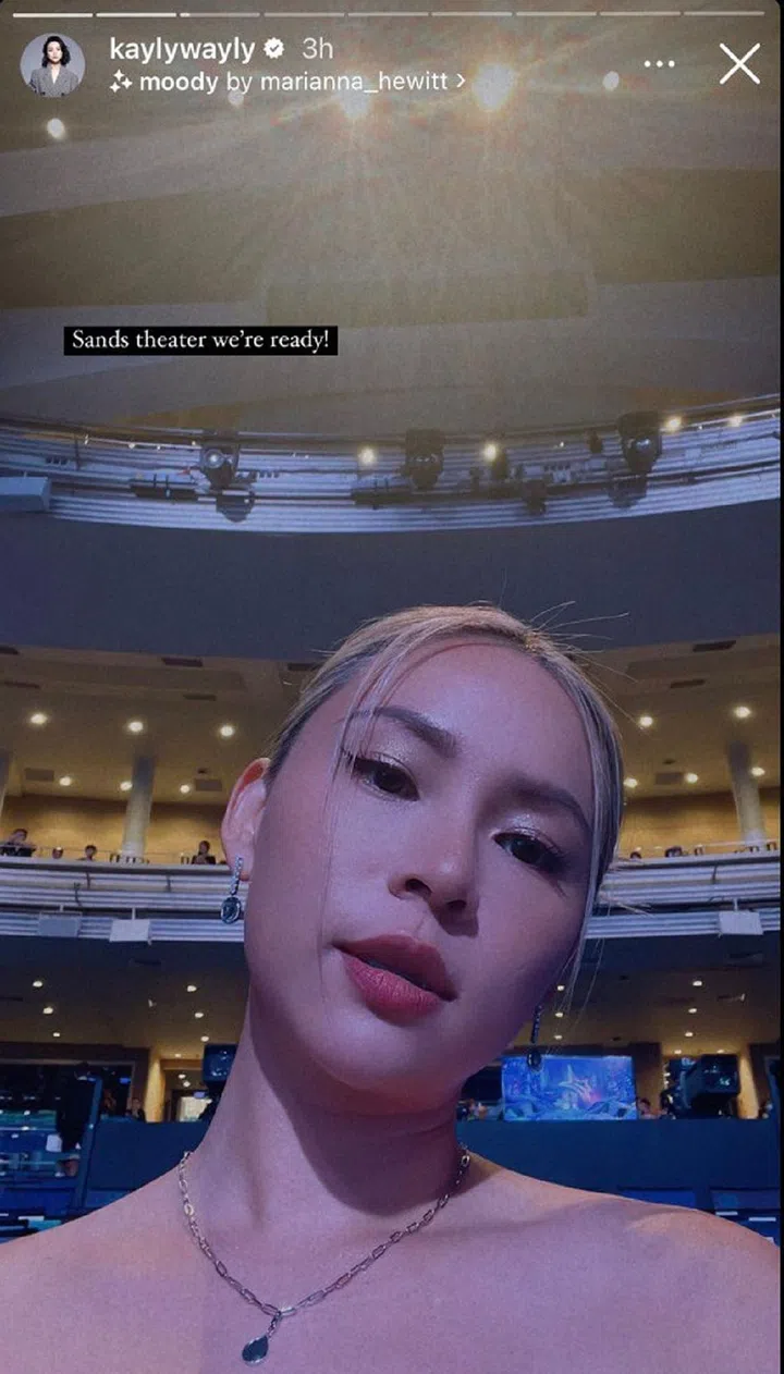 “Jalan Jalan” star marked the celebratory night with a shimmery bronze shadow swept across her lids that brought out her eyes and a punchy pink lipstick on her pout.