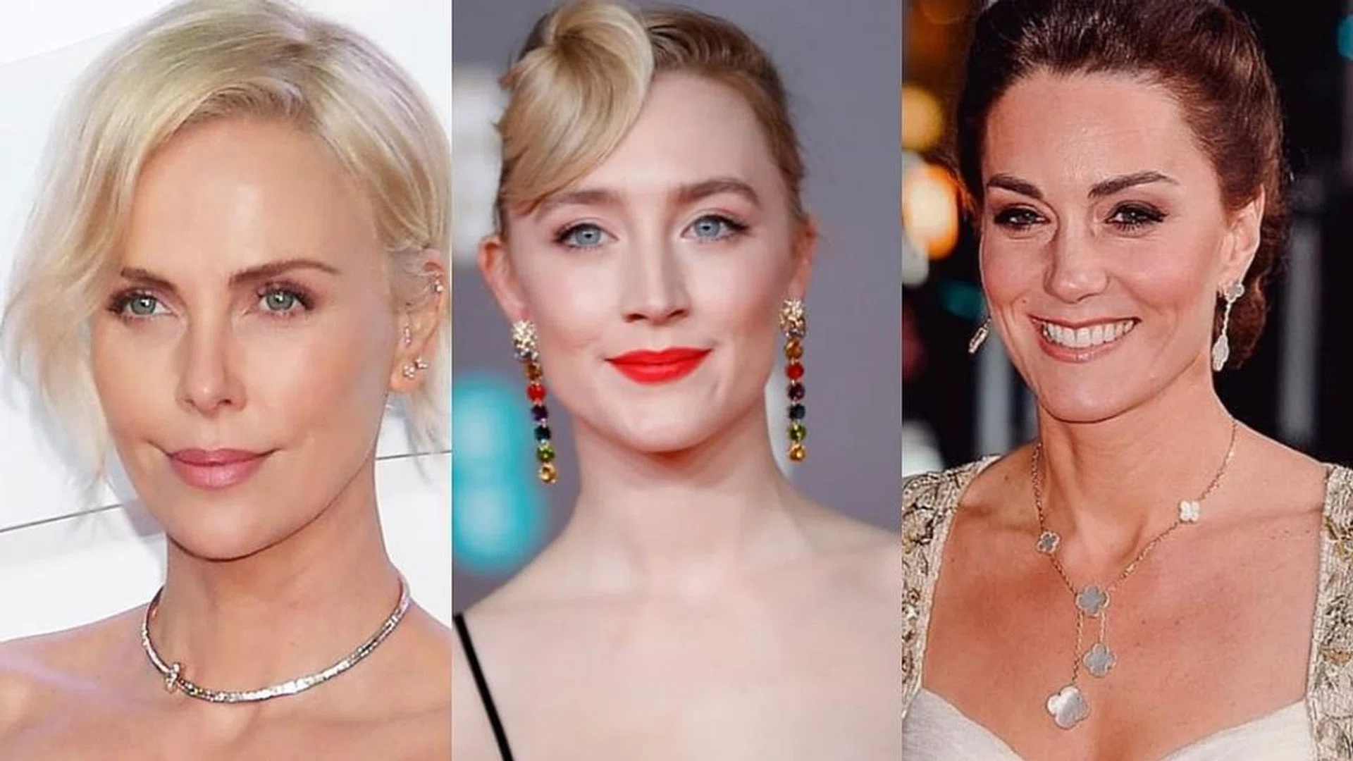 If you’re recreating this look, don’t forget to use a small brush to dust your lower lashline with a lighter shade of pink. Finish your eye look with a volumising mascara for some luscious lashes that’ll stay on all night. And if you’re game, use a bronzing palette to contour your nose like Charlize did to make it look sharper and more defined.