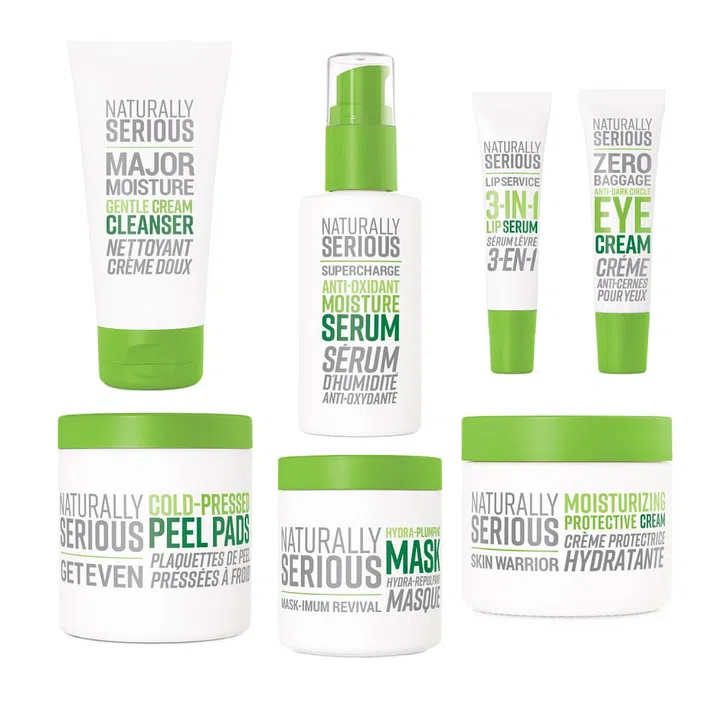 The Naturally Serious range comprises a cleanser ($43), serum ($89), cream moisturiser ($78), eye cream ($74), mask ($72), lip serum ($27) and peel pads ($63). Available at Sephora