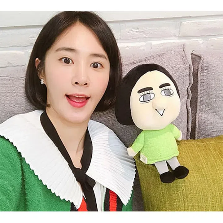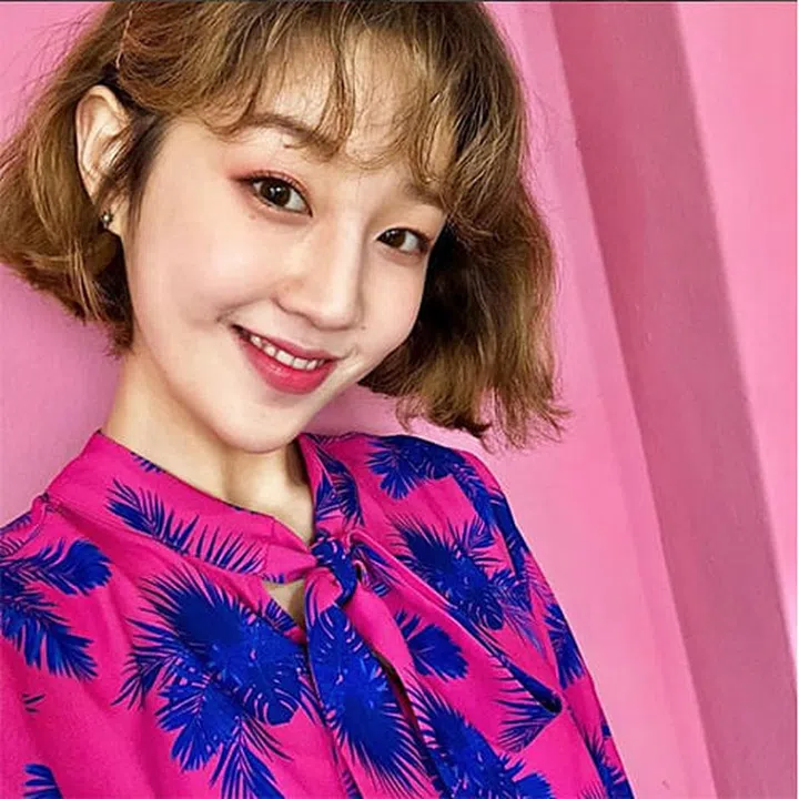 ... for a cute short bob with curled-in ends which she revealed to fans on her Instagram account. In the photos, she posed with a stuffed toy character named Aebong, which is a character she's playing in upcoming sitcom "The Sound Of Your Heart."