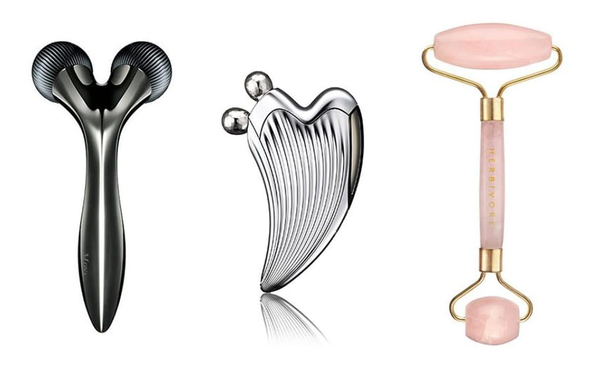 One tool to have is a facial massager that mimics the effects of a professional massage with their rolling motions. All that gliding and kneading will aid in improving our blood circulation and stimulating lymphatic drainage to rid our tissues of toxins and waste – while contouring the face at the same time.