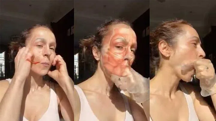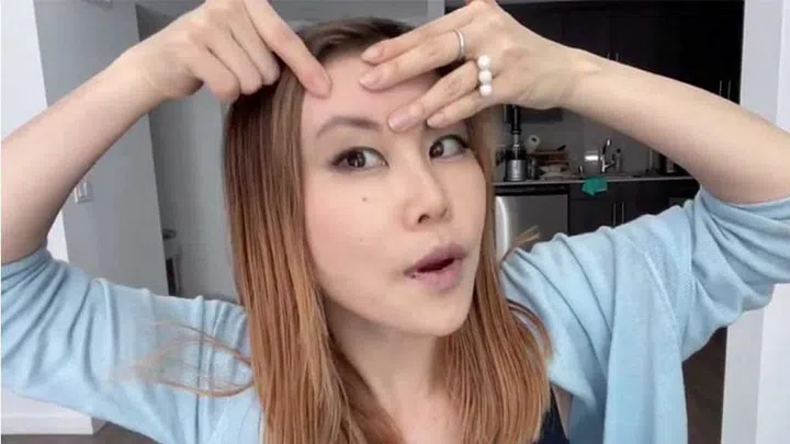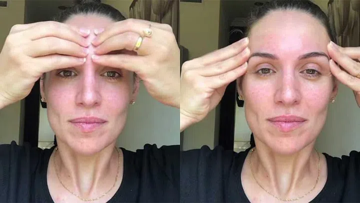 You will find a variety of other face yoga styles and exercises on YouTube or Instagram, such as @faceyoga_monna who usually prefers to make use of a continuous tapping method to release the forehead muscles and wrinkles (pictured above), crow’s feet, laugh lines, eyebags, and more. Monna’s technique is more soothing, relaxing, and massage-like – something that you can do quite easily while watching Netflix, or in bed.
