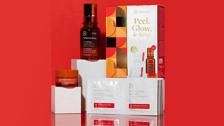 Glow-up with this brightening skincare routine. The 2-Step Alpha Beta Extra Strength Daily Peel refines a rough skin texture and reduces the appearance of dark spots, the Vitamin C + Collagen Brighten + Firm Serum gives the complexion that lit-from-within glow, and the Vitamin C + Collagen Deep Cream hydrates the skin, smoothening away fine lines and wrinkles for a healthy, glowing complexion.