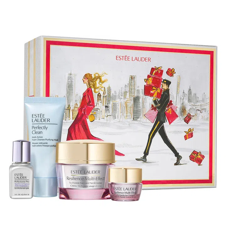 Restore the look of youthful skin with this lifting and firming skincare kit. A full routine, it includes the Perfectly Clean Cleanser, Resilience Multi-Effects Tri-Peptide Eye Creme, Perfectionist Pro Rapid Firm & Lift Treatment Acetyl Hexapeptide-8, and Resilience Multi-Effects Tri-Peptide Face & Neck Creme to plump up lines and wrinkles, and reduce skin sagging.