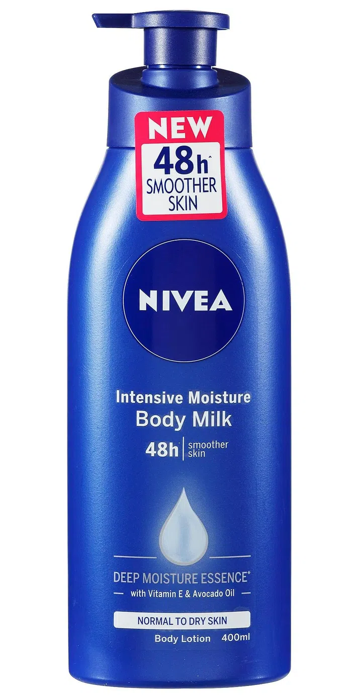 Enriched with vitamin E, grapeseed oil and avocado oil, the Nivea Intensive Moisture Body Milk Body Lotion boasts a new, non-sticky formula that aims to turn dry and rough skin to soft and smooth.