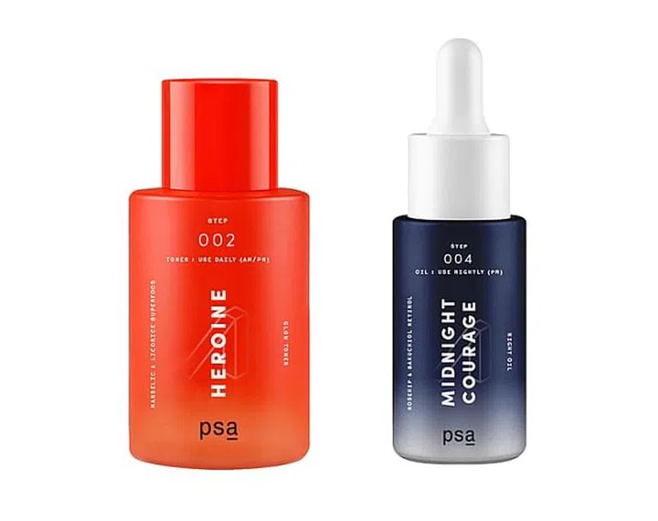 Check out: Midnight Courage (right, $38) is a retinol night oil which reduces blemishes, and Heroine (left, $29) works as a glow toner refining the appearance of pores.