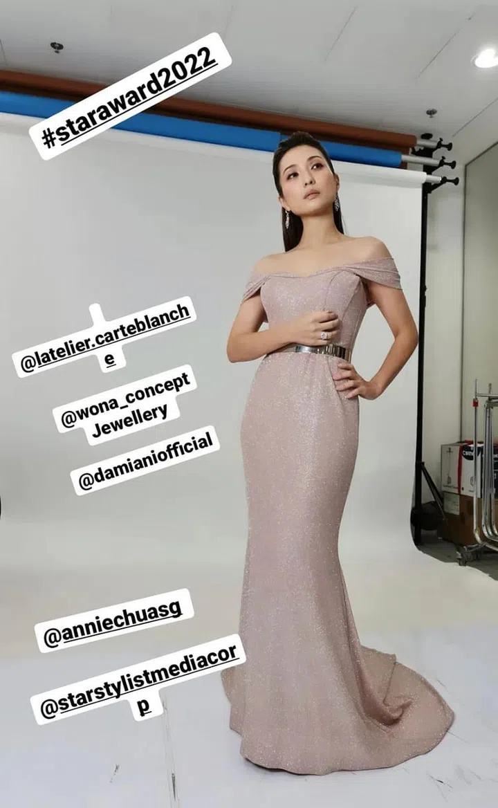 Following her controversial dress, Cynthia didn't disappoint at Star Awards 2022. The Best Supporting Actress nominee looked runway-ready, matching her entrance-making gown with a sleek hairdo and dark red lips.