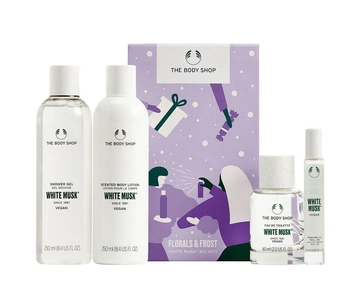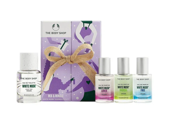 The Gift includes the Body Shop’s signature White Musk Eau de Toilette, made with musk, rose, jasmine, amber and wood.