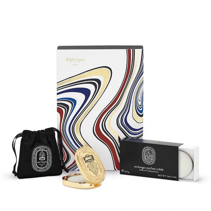 For a change of pace from spray formats, consider the solid perfumes from Diptyque. For its holiday collection this year, the Parisian brand has come up with a gift-worthy edition of its Eau Capitale scent (notes of rose, bergamot and patchouli) in a golden finish, with a travel pouch and a refill included.