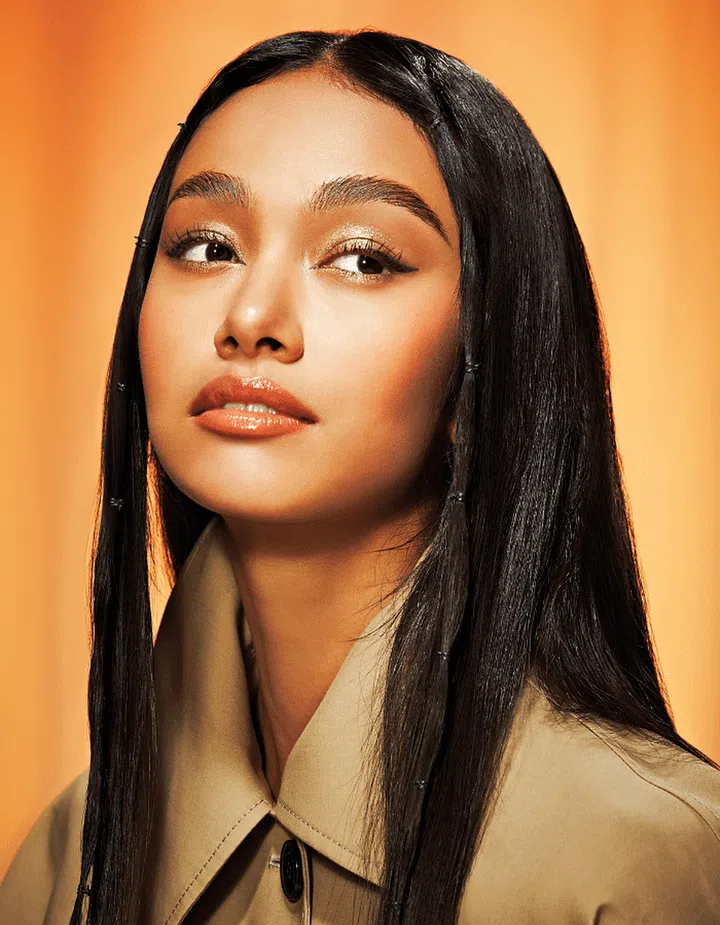 Replicating this look is as easy as bibbidi-bobbidi-boo, as Cinderella’s fairy godmother would say. Use cool-toned eyeshadows like pinks, purples and blues to create a romantic hazy eye look. Add definition with a navy eyeliner, extending it past your tear duct to elongate your peepers.