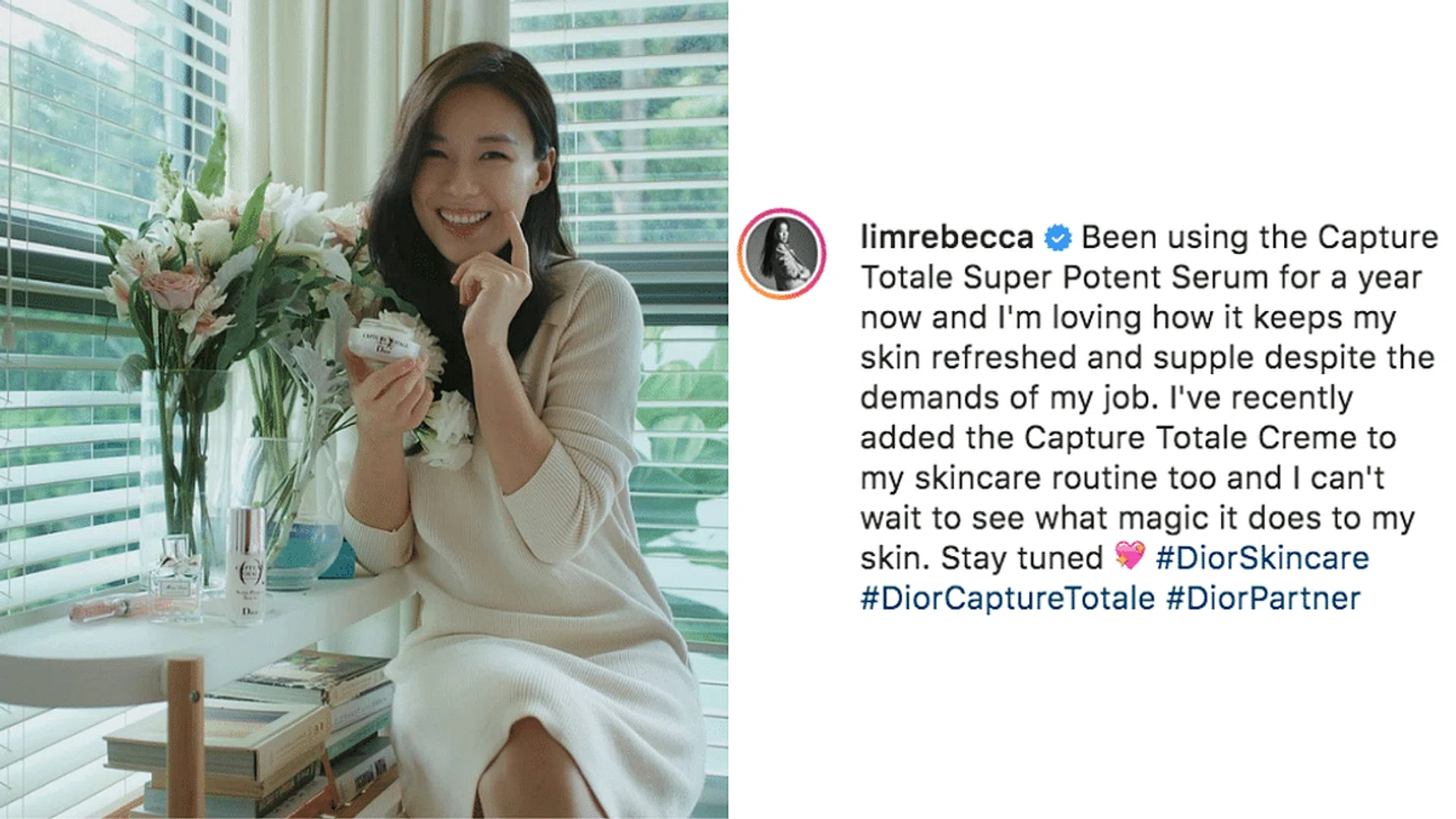 Do as Rebecca does and apply Capture Totale moisturiser right after. The creme comes in two finishes – Universal Creme and Rich Creme. The former is Rebecca’s preferred texture, and those with drier skin can opt for the Rich Creme.