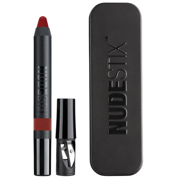 A brick red with a hit of purple, this burgundy-coloured lip from Nudestix triples as a lip liner, lipstick and blush stick. When in doubt, use it to create a cohesive, monochromatic look.
