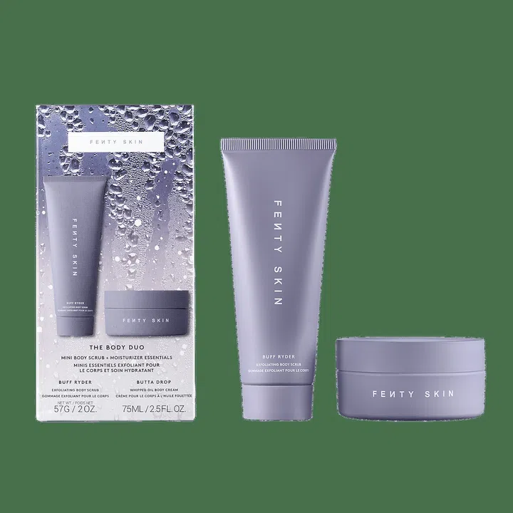 We all want smooth, supple skin right? With the The Body Duo, including the Fenty Skin Buff Ryder Exfoliating Body Scrub and Butta Drop Whipped Oil Body Cream, you’re one step closer to perfectly nourished skin.