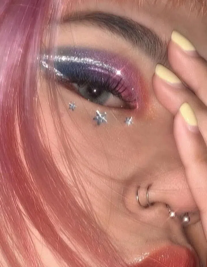 “One of the most memorable makeup looks I have done is the one with an orange-to-blue gradient and a metallic silver graphic liner with stars all over it (above). I was feeling bored in my room one night and decided to play with makeup for fun. I believe that was one of the first few times that I had actually experimented with makeup without any photo inspiration or mood board.”
