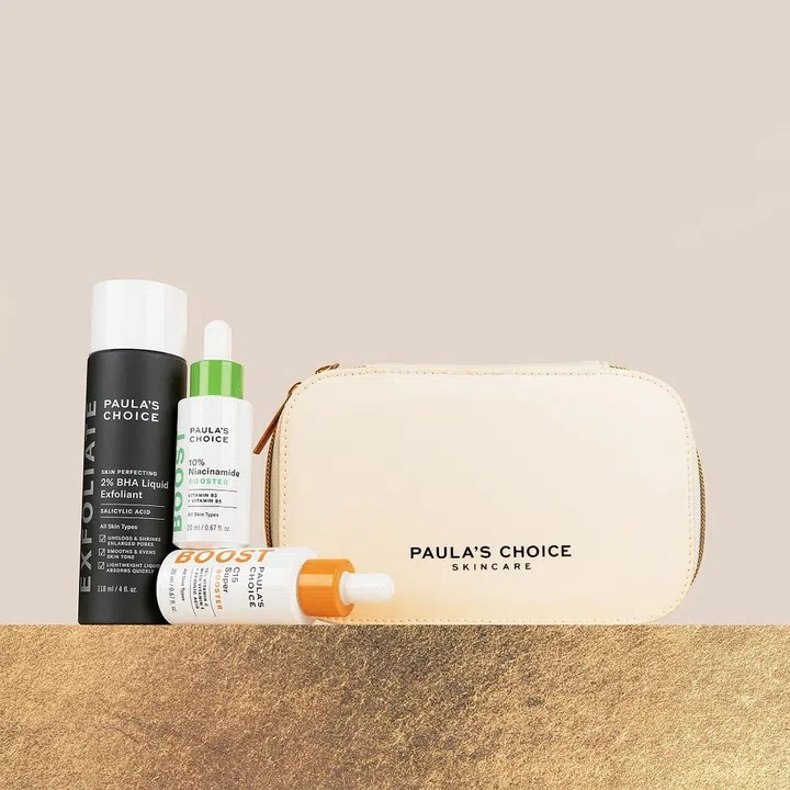 Fight the signs of aging with this limited edition, power-packed trio of products – 2% BHA liquid exfoliant, C15 super booster and 10% niacinamide booster. The three formulas work together for a multifaceted approach that sheds layers of dull skin to reveal your natural glow. For example, niacinamide (vitamin B) tightens enlarged pores while vitamin C brightens your skin. They're packaged in a holiday vanity mirror pouch, which is super helpful for storage or when travelling.