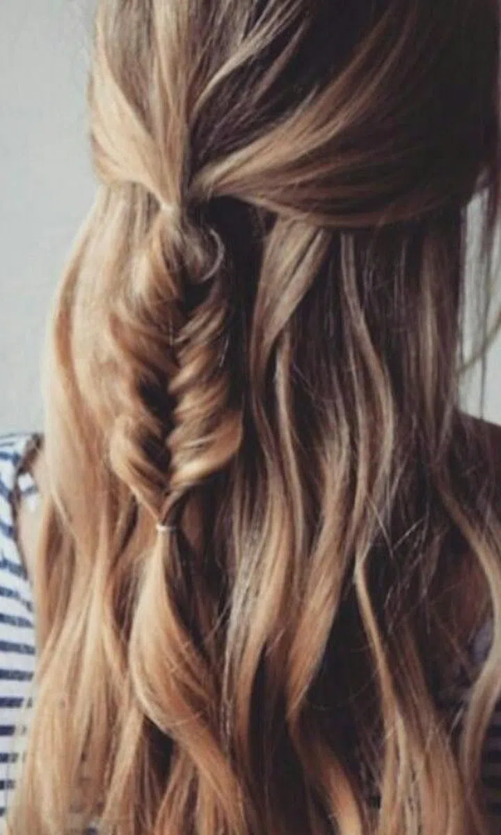 For this version of the fishtail braid, tie a regular half updo, then begin braiding.