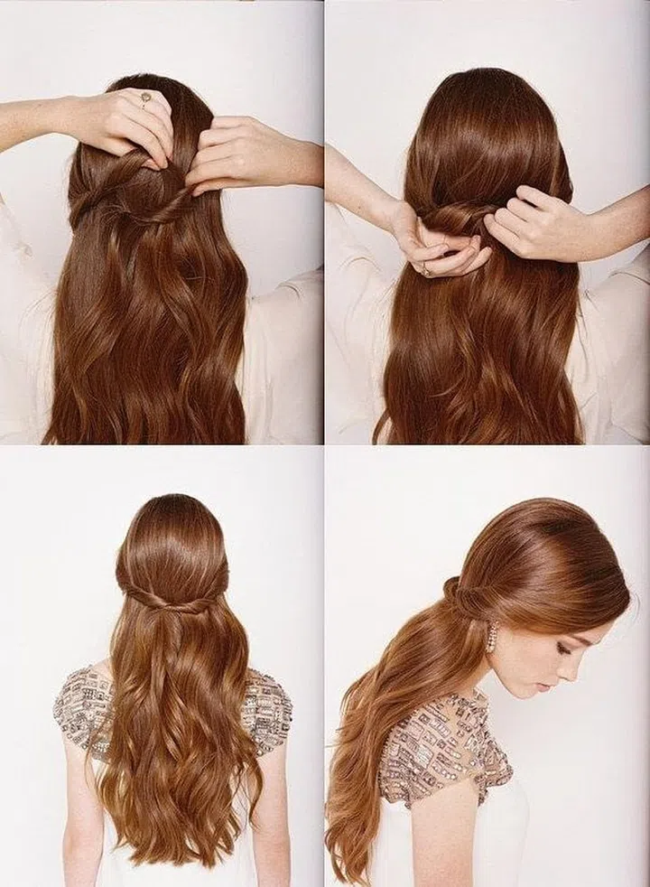 Jus turn your half up ponytail inside out and you’ve got a whole new hairstyle.