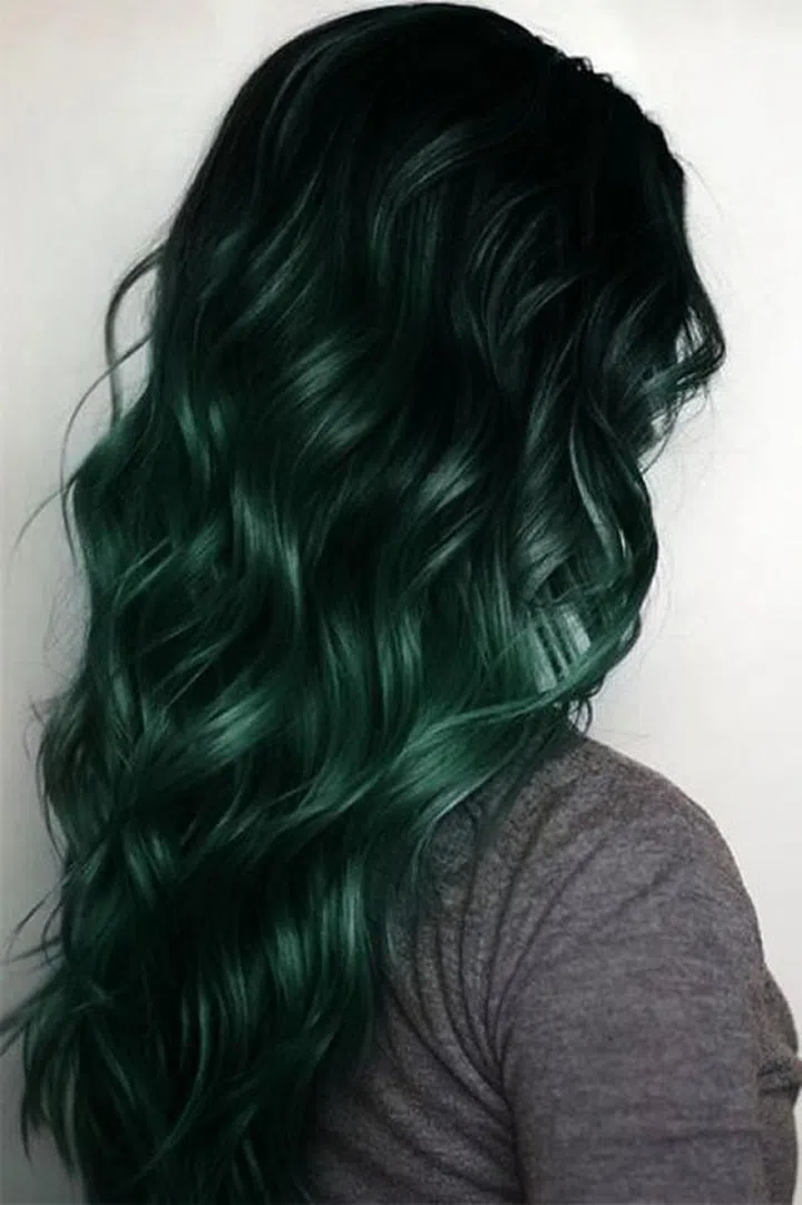 The emerald green ends of this hair colour combination makes a unique combination that’s often not attempted.