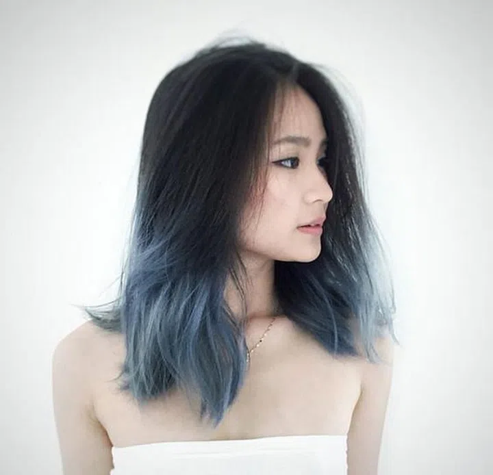 Blue is an extremely flattering colour on Asian skin, and this colour is one of the easiest to maintain. If you are attempting a light ashy-blue, bleaching may be required but you only need blue shampoo to maintain the colour and to keep brassiness away.