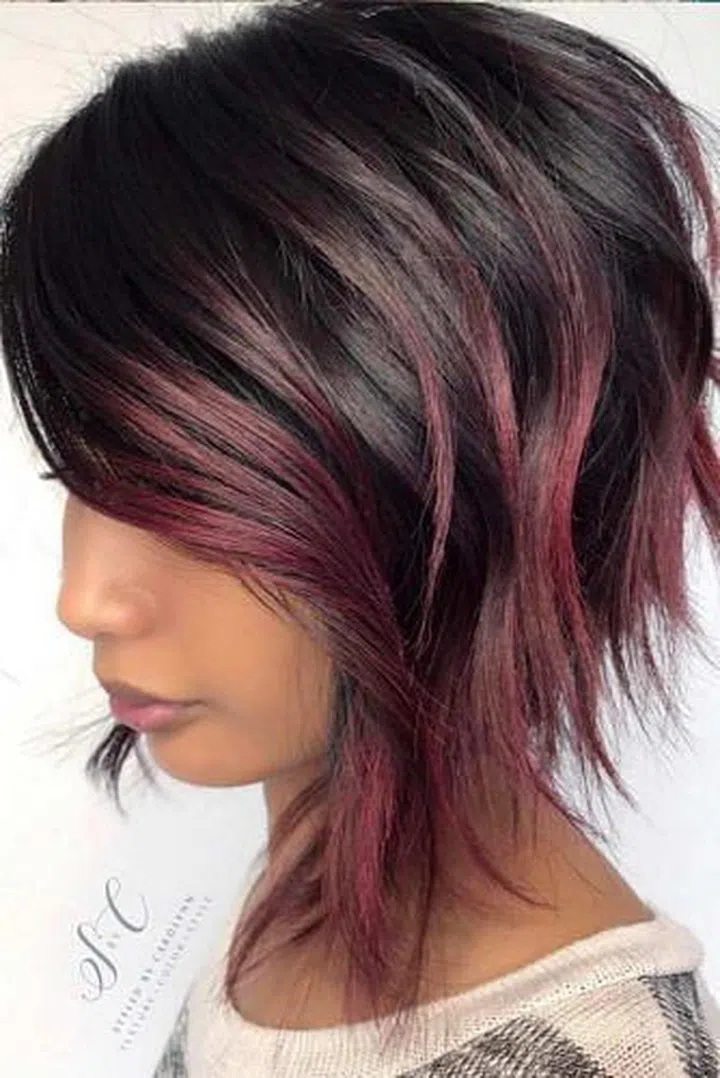 A style for longer hair, the cascading tones of copper, red and purple look amazing whether you have loose curls or straight hair.