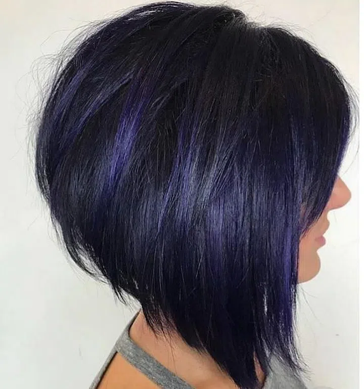 Black and blue complement each other so well, and in this case, the dark royal blue makes for discreet highlights on a head of black hair. Step into the sun, and the brilliance of the colour will come into light (pun intended).