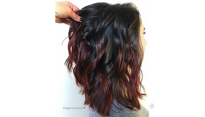 Like the colours you see on an oil slick, this hair colour uses deep purples, blues and burgundy for a gorgeous hair colour that is barely there. Step into strong sunlight during lunch, and you’ll be treated to envious stares when the colours truly come alive.