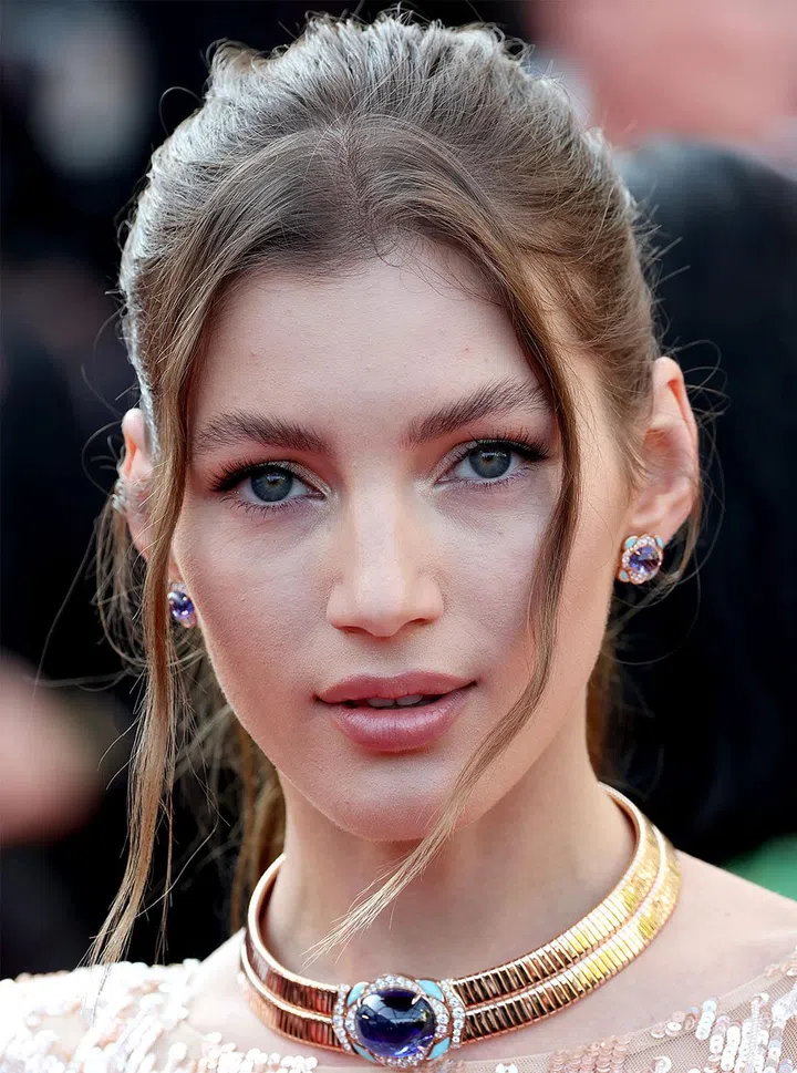 The glam factor in this look swings more nighttime than day, but there’s something completely classy about the deliberately tousled hair around the crown of her head. Whether you’re going for a bun or ponytail, this is one way to make your face look longer. Perfect if you’ve got a more rounded face.