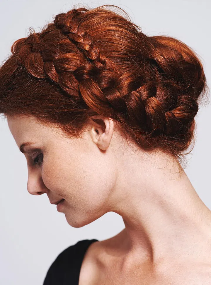 A braid across the top of your head might seem old-fashioned - it is called a milkmaid braid after all - but it’s made a comeback on the runway in the last few seasons and is definitely worth trying out. All you need to do is braid your hair in two sections on either side of your face before wrapping them up and over top. Braids look really cool with various hair colours or highlights, and this look is even evening glam-appropriate.