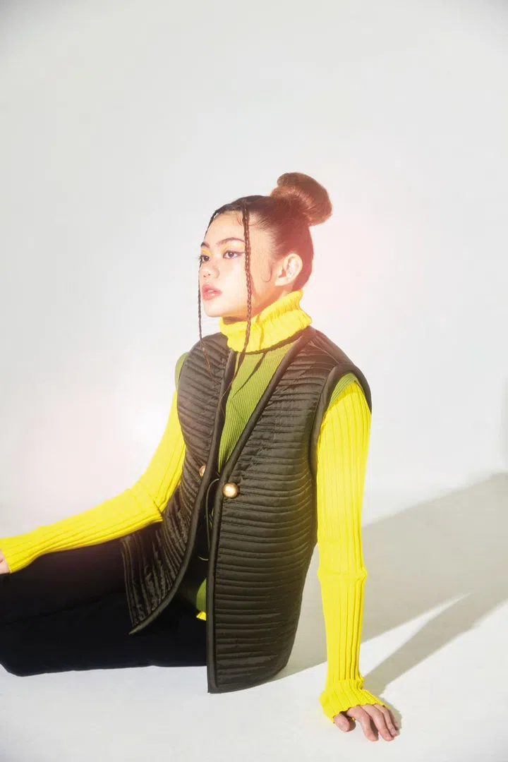 Turtleneck, inner vest, vest, and pants, Tory Burch