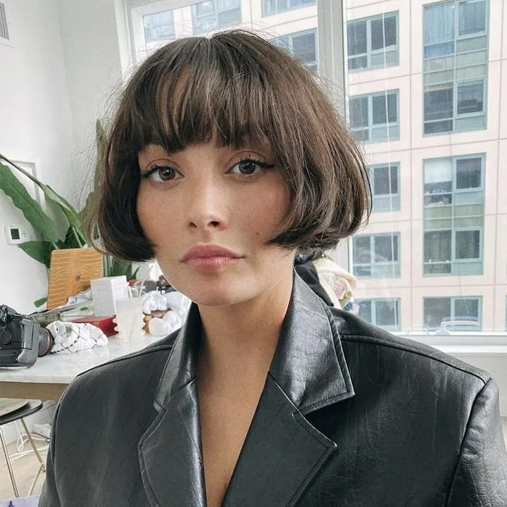 This micro bob is Parisian chic with its bangs and curls, and we love how it really highlights the eyes. Opt for a blunt cut if you really want to enhance the illusion of volume.