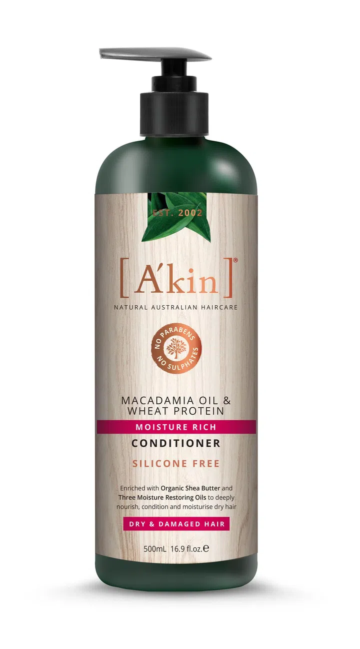 Best repairing (moisturising)conditioner for damaged hair: A’kin Macadamia Oil & Wheat Protein Moisture Rich Conditioner, $38.50