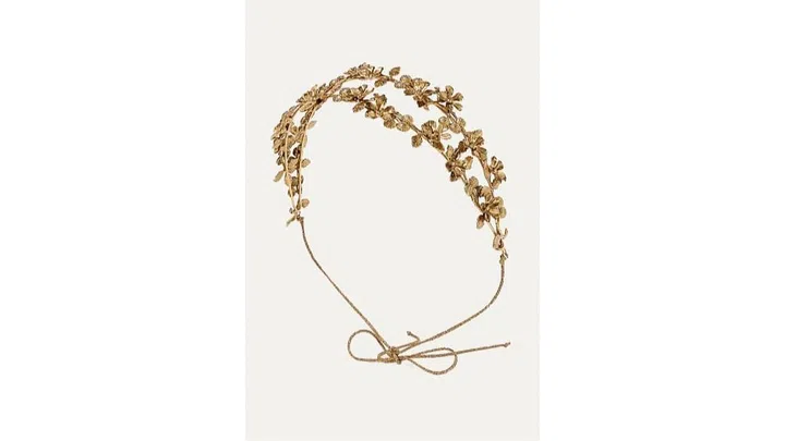 The delicate double row of golden flowers and berries gives your hair an ethereal look. Pair with soft waves to complete.