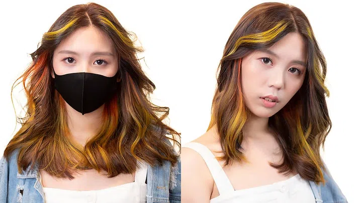 Besides highlights, Face Line Color works with lowlights too. The subtle yet sophisticated effect of dark Lilac Shadow lies in how it frames the sides of your face with a contrasting light ash brown base, creating an illusion of more hair volume at the crown. The gorgeous colour accentuates your features, and also enhances your eye makeup.