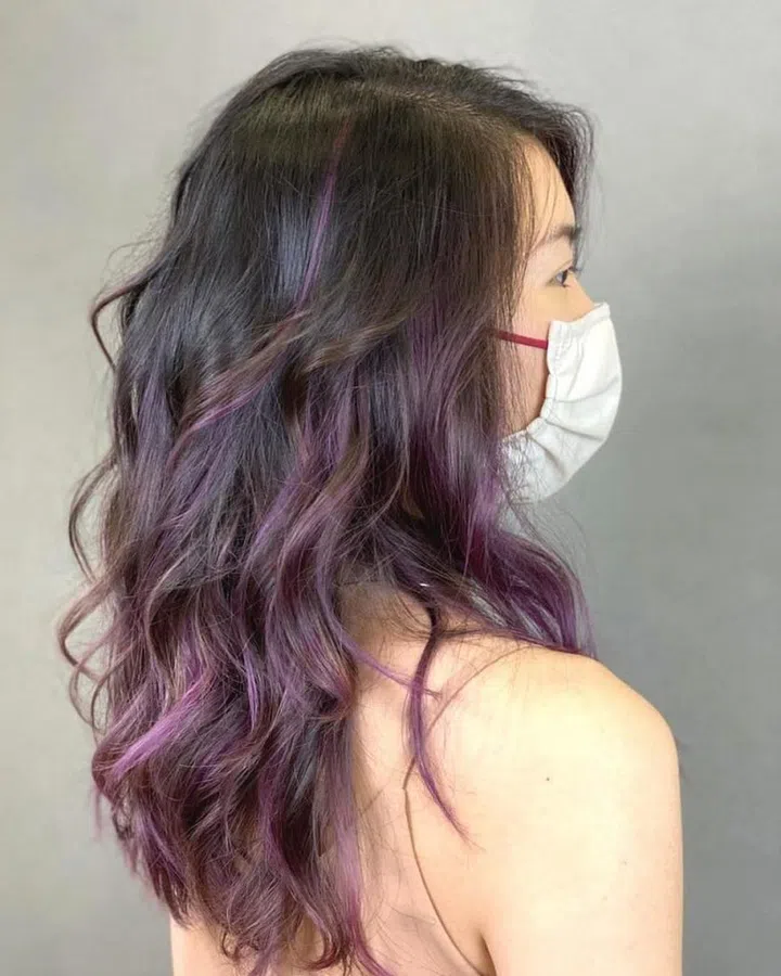 “It’s a colour of prosperity that’s both modern and perfect for the festive season”, says master stylist Scarlett Zhu of Kimage. “A subtle purple coupled with curls brings out the romantic look. With a purple balayage, the regrowth of the hair will not be obvious, so your balayage colouring will last for a longer time without having retouch the roots.”
