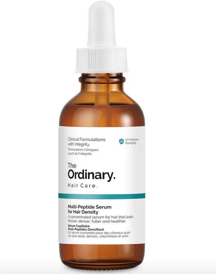 First, let's get to the root of the problem. With hair thinning, you'll start to notice that your hair starts to lose its volume and thickness. This is usually caused by male or female pattern hair loss, Alopecia areata, diet, lack of vitamin D, stress or pregnancy. Products to curb hair thinning from occurring or at least, improve the condition of your hair, includes the Multi-Peptide Serum for Hair Density by The Ordinary. This highly raved product has made a name for itself for good reason, and it's because it works to support hair health so that it looks thicker, denser, fuller and healthier.