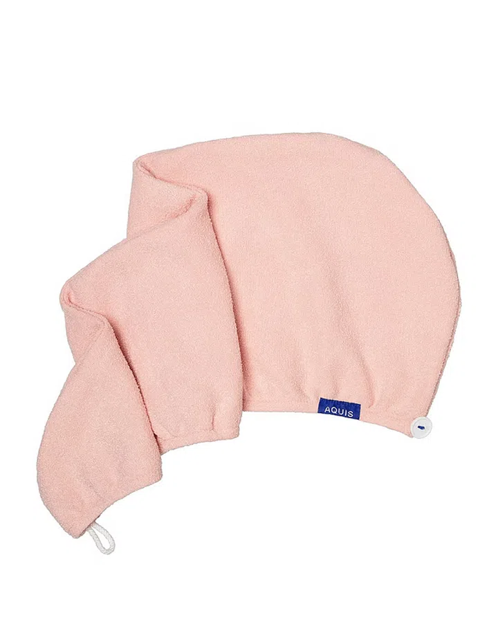 Constructed out of fabric made with recycled water bottles, Aquis’ microfiber hair towel reduces hair drying time as it quickly yet gently wicks away water without the use of heat or friction. The proprietary Aquitex cloth has woven channels that aid water removal and reform hydrogen bonds to increase hair strength and keratin integrity. Available in pink, light and dark blue.