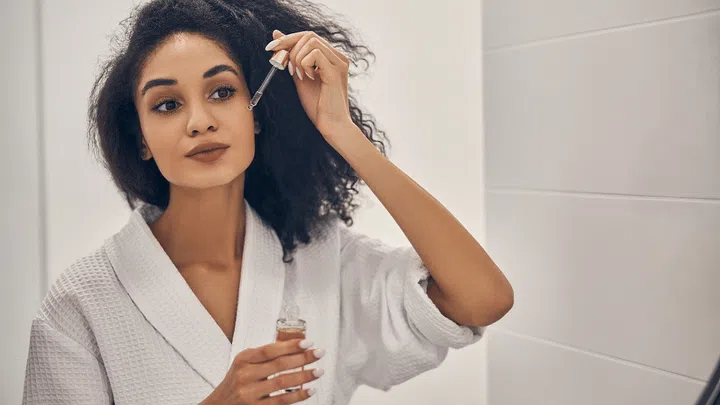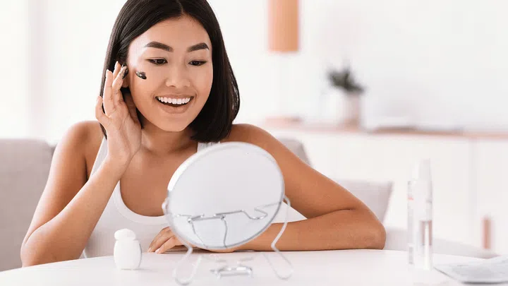Based on your skin type, apply a suitable serum and wait a few minutes for it to be fully absorbed. Then apply a cream that is rich enough for your hands to glide around your face easily with no skin tugging.