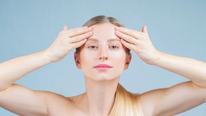 Move your fingers across your forehead in a zigzag motion to relax muscles. Reduce the appearance of crease lines by sliding your fingers in an upwards motion from the base of your forehead to the top, from one side of your face to the other. Repeat three times, concentrating on the areas where wrinkles are more pronounced.