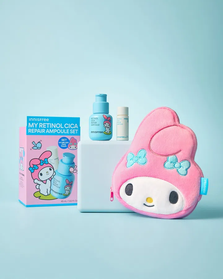This partnership brings beloved Sanrio characters to Innisfree skincare staples, from the Canola Lip Balm to the Green Tea Seed Hyaluronic Serum—each adorned with cute motifs of My Melody, Cinnamoroll, and Pompompurin.