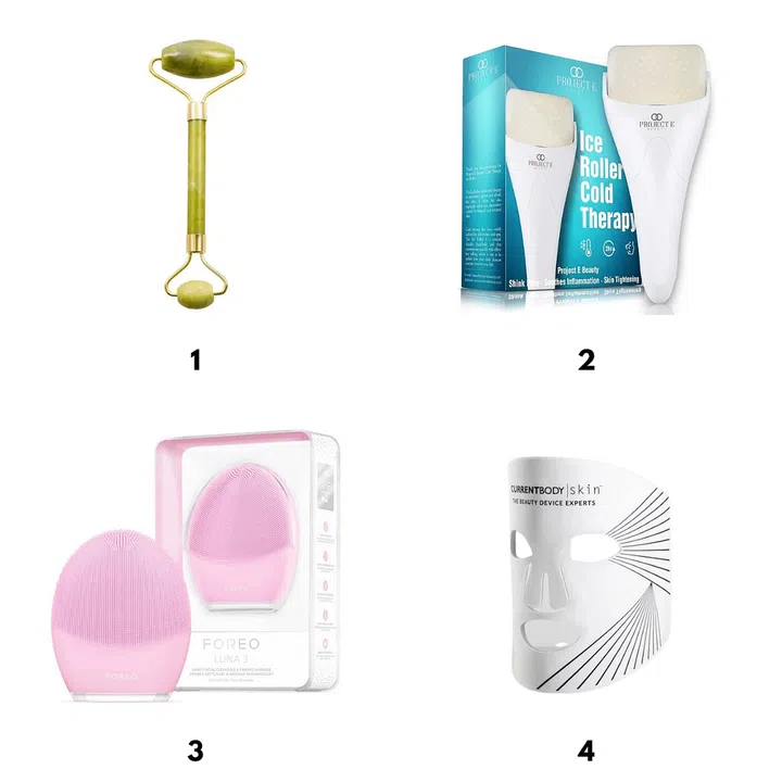 Facial devices range from humble jade rollers to high-tech LED face masks that can bolster your beauty routine. Jade and ice rollers, for example, can help to depuff and sculpt the face in the mornings, while light therapy devices can help combat acne-causing bacteria and encourage collagen production. And then there are cleansing brushes to help you get a better, deeper cleanse without stripping your skin raw.