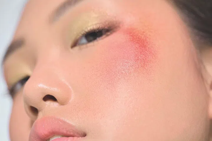 Build up the intensity of your blush like you would with watercolour paints. The key to achieving this look is to blend well and soften any harsh edges. Keep the rest of your makeup minimal – no need for eyeliner or a strong lip.