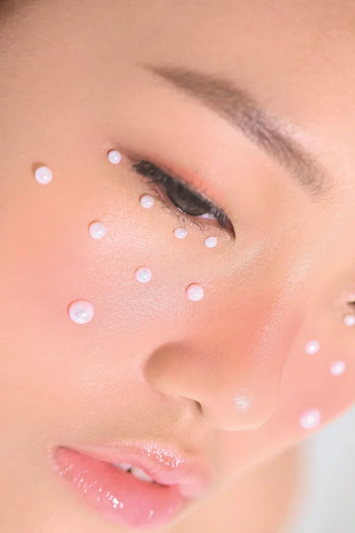 Elevate your blush by adding a scattering of pearl accents. Opt for flat-backed pearl embellishments in different sizes and secure them with eyelash glue – alternatively, you can also use self-adhesive adornments.
